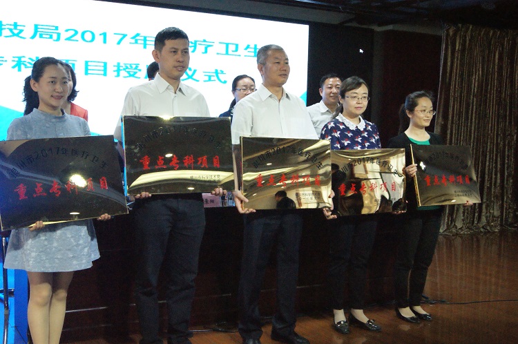5月25日,“银川市科技局2017年医疗卫生重点专科项目授牌仪式”在银川市第一人民医院举行。自治区科技厅社会发展处调研员张乃颖和银川市科技局有关负责人出席仪式。活动中市科技局与项目单位签订《项目责任书》,并为项目单位授牌。