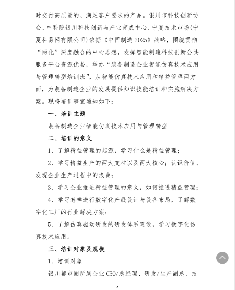 装备制造企业智能仿真技术应用与管理转型培训班的通知