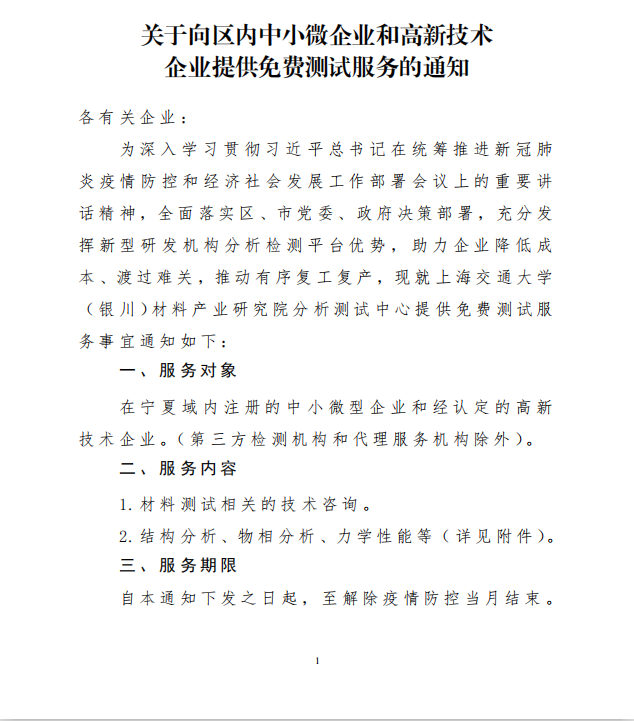 关于向区内中小微企业和高新技术企业提供免费测试服务的通知