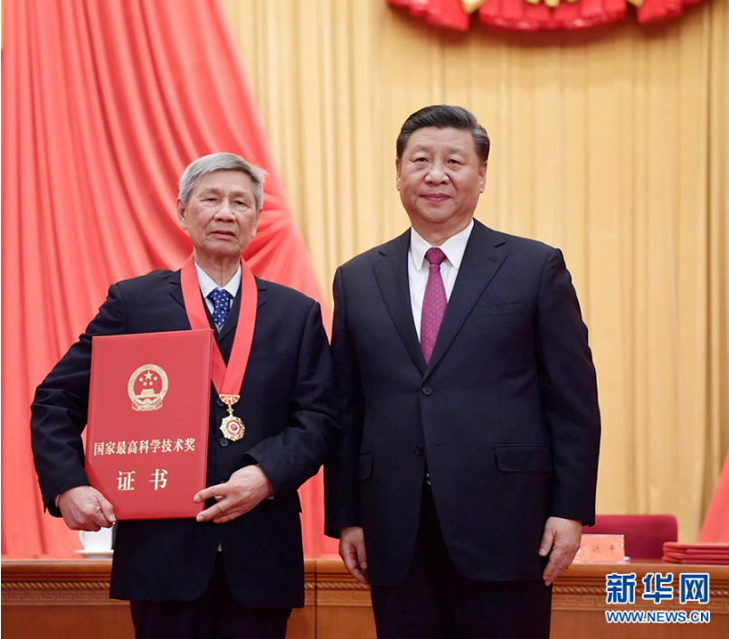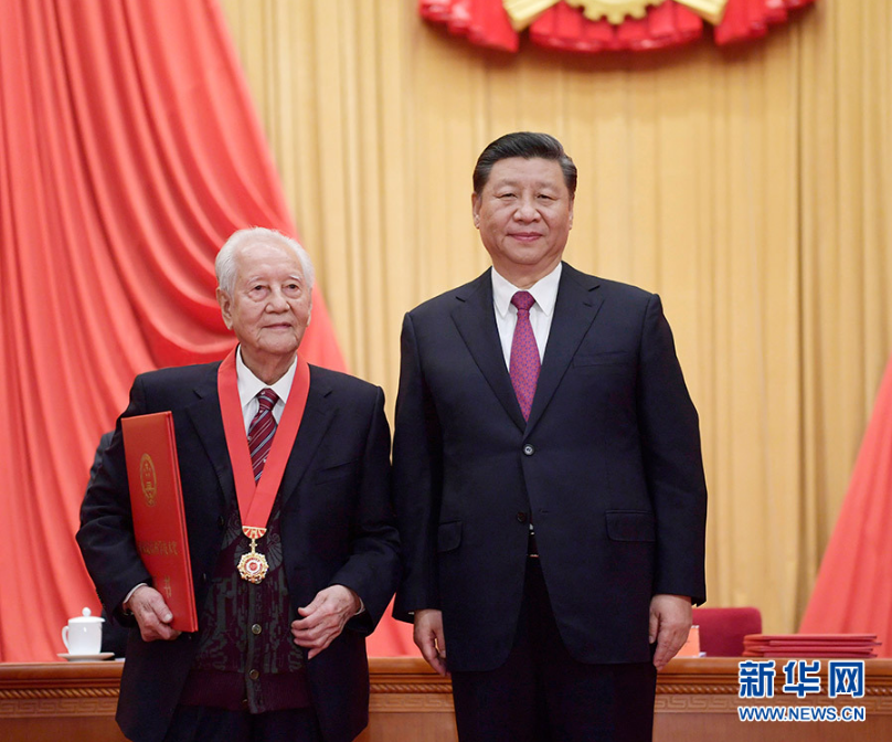 1月10日,2019年度国家科学技术奖励大会在北京人民大会堂隆重举行。中共中央总书记、国家主席、中央军委主席习近平向获得2019年度国家最高科学技术奖的原中国船舶重工集团公司第七一九研究所黄旭华院士颁奖。 新华社记者 李学仁 摄
