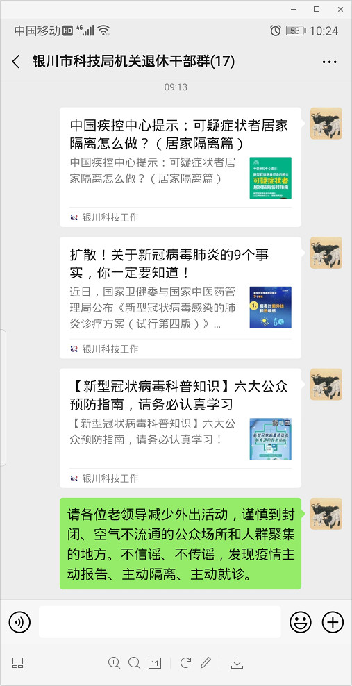 市科技局严格执行24小时专人值班和领导带班制度,对系统内干部职工疫情和外出离宁(返银)情况每日进行摸排,每日严格落实疫情报告制度和零报告制度,坚决防止缓报、慢报、瞒报、漏报。各县(市)区科技局重点开展入户宣传和定点联防联控疫情,为群众发放医用口罩和防控通告,在农村和社区利用便携式音箱、乡村大喇叭、流动卫生保洁车等滚动播放防疫科普知识,在非物业管理小区门口布控,排查登记外来人员,防止疫情蔓延。