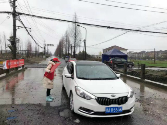 而在家原本休息的妻子郑霞,看到疫情越来越严重,作为村后备干部的她待不住了。在把一双儿女托付给爸妈后,她也匆匆赶赴抗击疫情一线,走家串户向村民普及防疫知识,组织协调落实防控措施,在路口检测点协助测量体温。