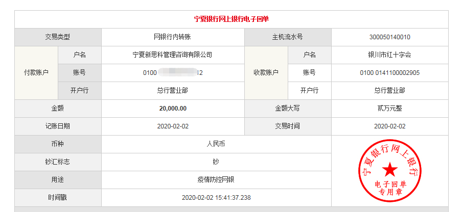 新型冠状病毒感染的肺炎疫情防控工作,牵动着全国人民的心。2月2日,宁夏新思科管理咨询有限公司积极加入支援队伍,通过银川市红十字会捐助疫情防控资金20000元,用实际行动践行企业的初心和使命、履行企业在疫情防范中的重要职责。